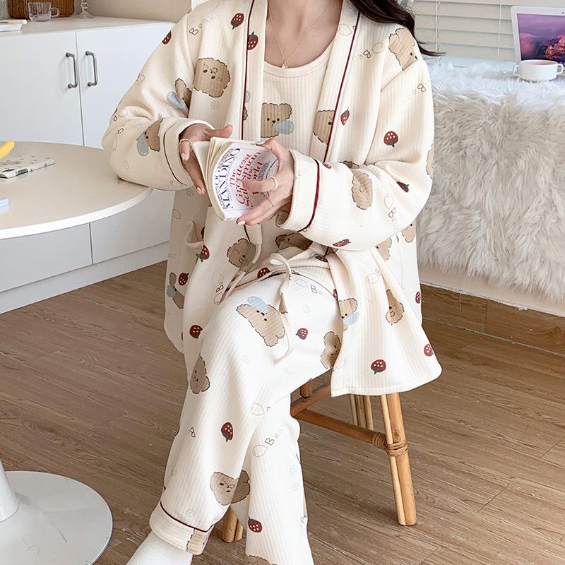 Entdecken Sie ultimativen Komfort und Stil mit diesem dreiteiligen Umstandsset, perfekt für die Wintersaison.. Dieses Set ist mit verdickter Luftbaumwolle gefertigt und bietet Wärme und Gemütlichkeit für Mütter nach der Geburt und während der Stillzeit.. Der elegante Kimono im koreanischen Mode-Stil bietet eine entspannte Passform, ideal sowohl für zu Hause als auch zum Stillen.. Genießen Sie die Mischung aus Funktionalität und schickem Design in dieser unverzichtbaren Ergänzung für Ihre Umstandsgarderobe.