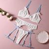 Spitzen-Farbblock-Dessous-Set: Bügel-BH, String und Strapsgürtel mit Schleife