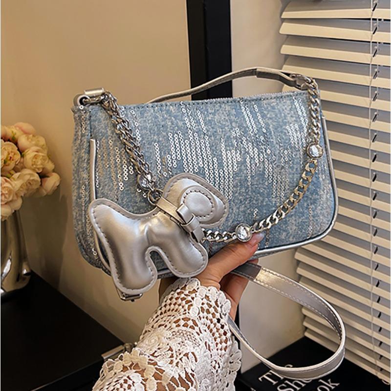 - **Details zur strukturierten Mehrwegtasche**: Verfügt über eine stilvolle, strukturierte Achseltaschen-Silhouette mit PU-Material, Denim-ähnlichem Druck, metallischer Kettendetail, Charm-Accessoire und vielseitigen Trageoptionen (Einzelschulter, Umhänge, Handheld), ausstrahlend kantigen und verspielten Charme. Mehrere Farboptionen (Pink, Silber) Wir berücksichtigen unterschiedliche Stilvorlieben.
