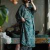 Johnature Damen Vintage Print Blumenkleid V-Ausschnitt Herbst Locker Chinesischer Stil A-Linien-Kleid