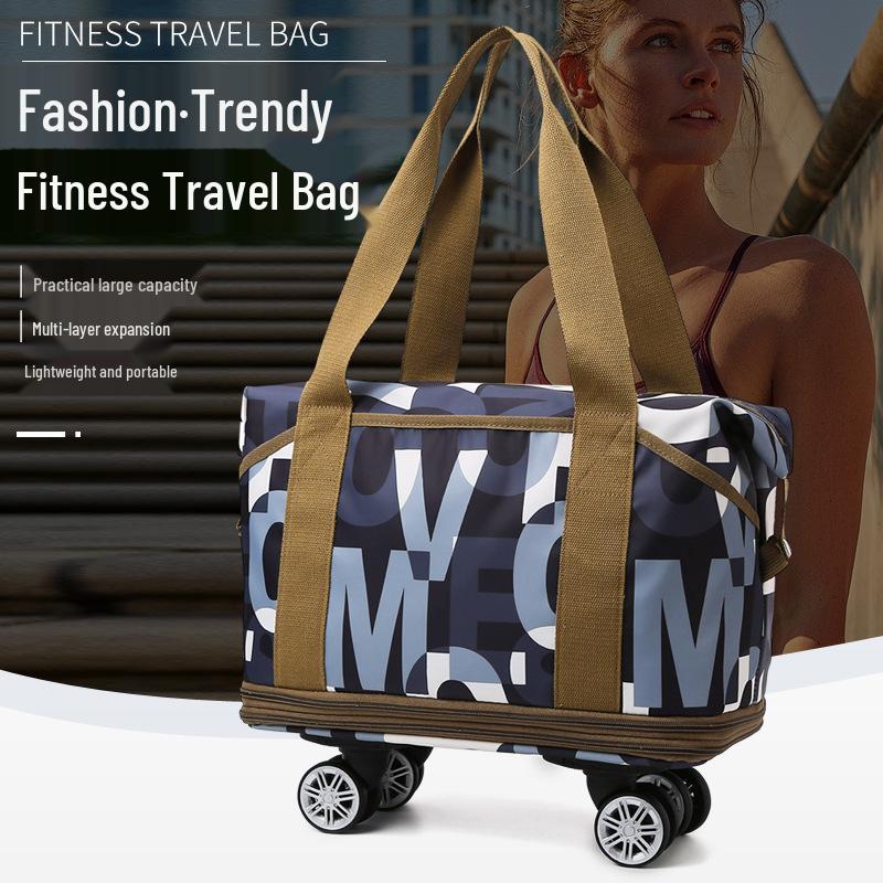 Kostenloser Versand Trolley Gepäckset mit großer Kapazität: Modische, tragbare Reise- und Wickeltasche mit Rädern