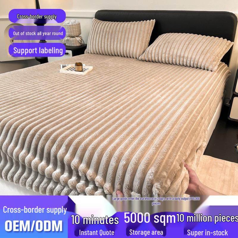 Hautfreundliches doppelseitiges Fleece-Spannbettlaken mit Kordelzug - Dickes Milchsamt Unifarbe Tagesdecke.