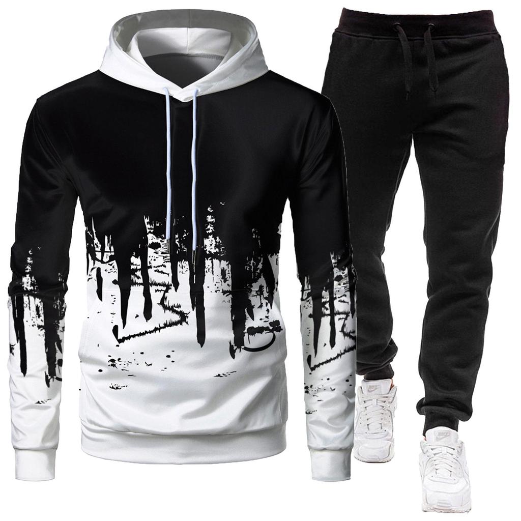 Erleben Sie eine Mischung aus Komfort und ausgefallenem Stil mit diesem sportlichen Slim-Fit-Kapuzenset für Herren.. Das Set ist aus einem hochwertigen Baumwollmischmaterial gefertigt und bietet außergewöhnliche Weichheit und Atmungsaktivität.. Mit einem auffälligen Graffiti-Print verleiht es Ihrer Freizeitgarderobe einen kühnen, zeitgenössischen Look.. Das Set besteht aus einem Kapuzenoberteil und passenden Unterteilen, beide entworfen für eine elegante, stromlinienförmige Passform, die Ihre Figur betont.. Dieses Set ist perfekt zum Entspannen und für leichte Aktivitäten und vereint modisches Design mit alltäglicher Funktionalität.