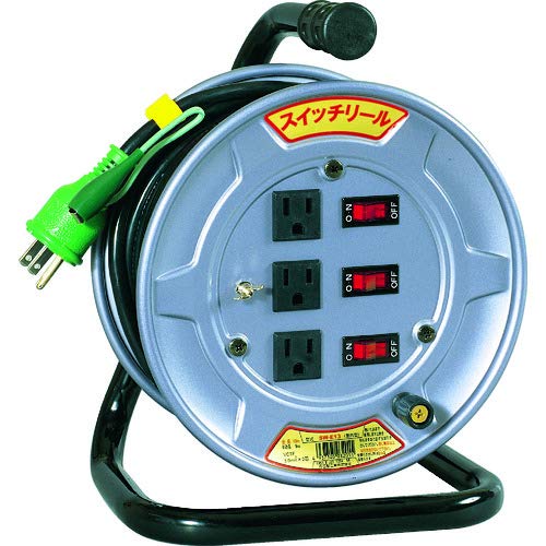 Nichido Electrician's Drum Switch Reel, 100V, with Ground, 10m, SWE13