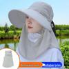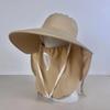 Koreanische Mode Sommer Sonnenhut für Damen mit Zopfloch, breiter Krempe und Schal