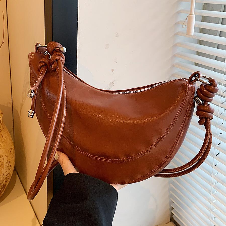 - **Details zur strukturierten Mehrwegtasche**: Verfügt über eine stilvolle, strukturierte Halbmond-Taschen-Silhouette mit PU-Material, geknotetem Schulterriemendetail und vielseitigen Trageoptionen. (Ein-Schulter, Umhängetasche mit verstellbarem Riemen 162cm), schicken und minimalistischen Charme versprühend. Mehrere Farboptionen (Schwarz, Heller Kaffee, Kaffee, Braun) Wir berücksichtigen unterschiedliche Stilvorlieben.
