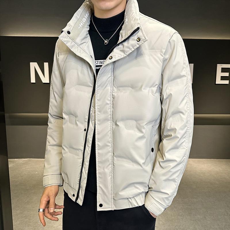 Winter new down jacket men's short stand-up collar trendy brand solid color fashion casual thickened warm white duck down jacket