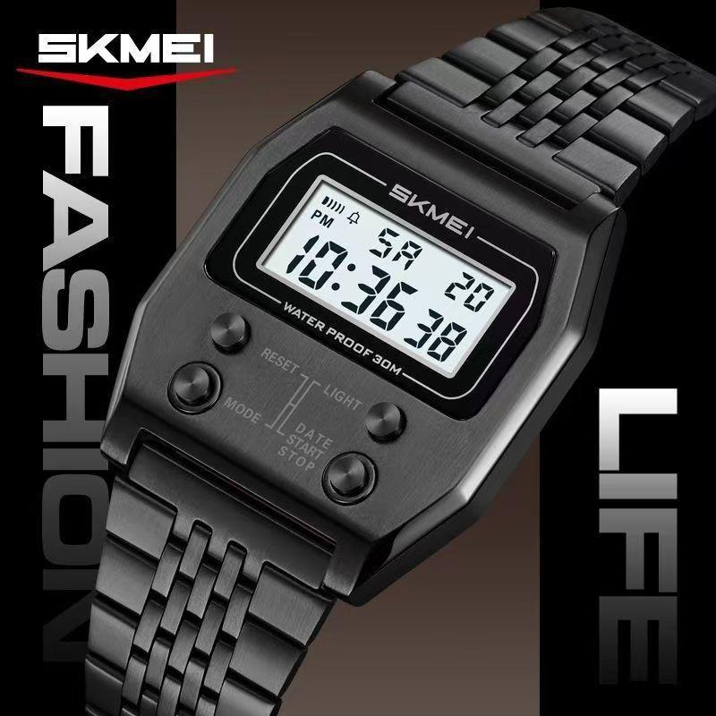 Herren Armbanduhren Edelstahl Sport Luxus Retro LED Elektronische Wasserdichte Digitaluhr