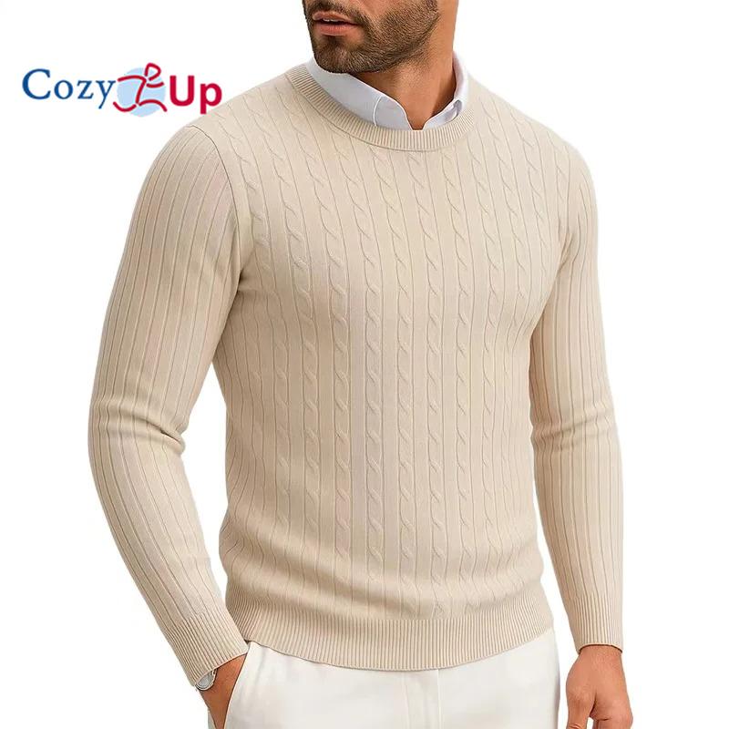 Herren Rundhals Strickpullover Passform Langarm Freizeitpullover Winter Warm Zopfmuster Zopfstrickpullover