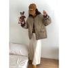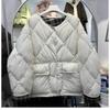 Crew neck sleeves plaid splicing down jacket women's light and thin short diamond small loose white duck down jacket