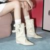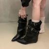 Schaffellversion~ Temperamentvolle Mode Niet Nieten Dünne Western Ritterstiefel Innere Erhöhung Hosenstiefel Dünne Spice Girl Mode Stiefel