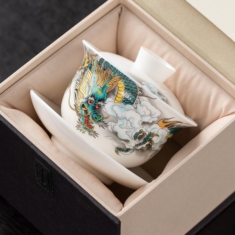 Longteng Jade Porzellan Sancai Gaiwan Hochwertige Geschäftsgeschenke für leitende Lehrer und Väter, hochwertige Souvenirs für die Jahresversammlung des Unternehmens