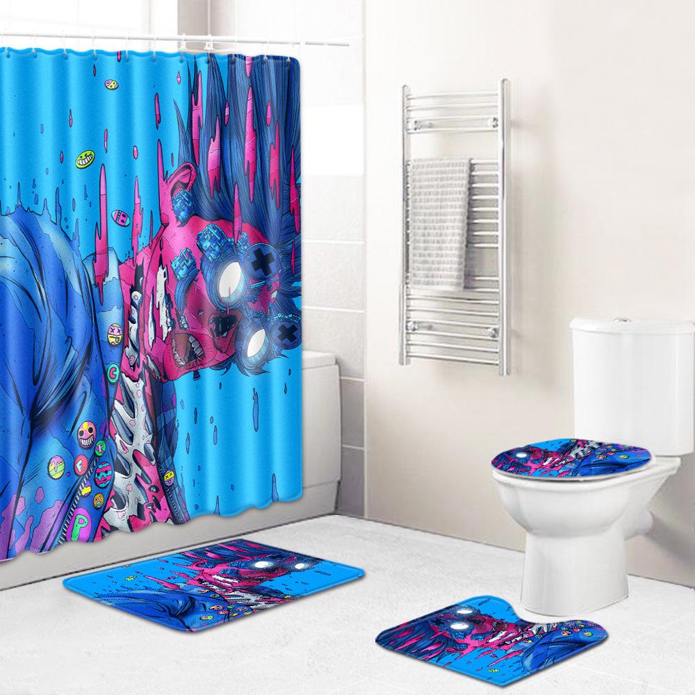 Skull Shower Curtain Floor Mat Combination Four-Piece Set Bathroom Toilet Carpet Shower Room Mat Foot Mat