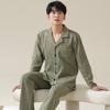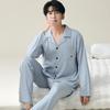 Herren Übergröße Reiner Baumwoll-Pyjama-Set - Langärmiger Cardigan für Herbst/Winter