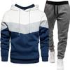 2024 Herrenmode Gespleißtes Kapuzensweatshirt & Lange Hose Zweiteiliger Sportanzug für Herbst/Frühling