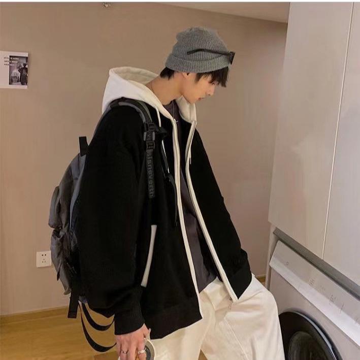 Herren Zweiteiler Koreanischer Stil Reine Baumwolle Strickjacke Hoodie, Lockere Passform, Herbst 2022 Trendige Jacke