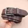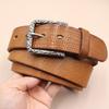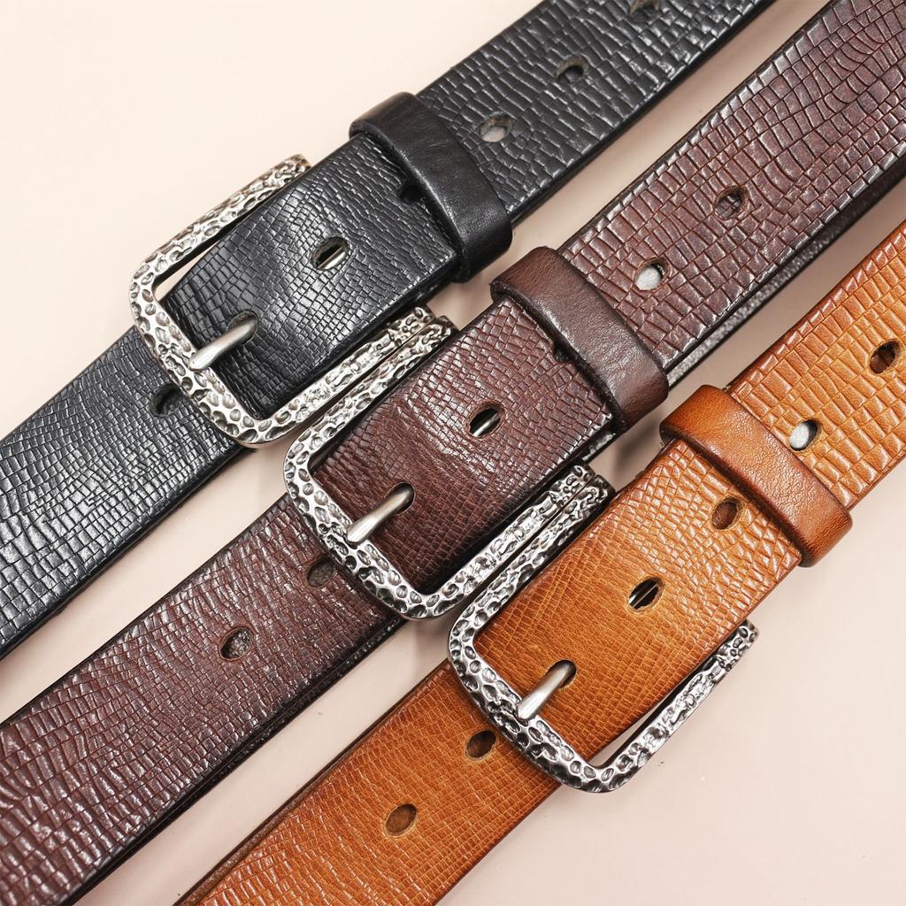 3.8CM Men's Belt Genuine Leather Belt Casual Retro Burst Needle Buckle Shiny Front Layer Cowhide Lazy Belt
