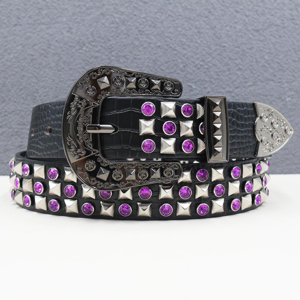 Rivet Belt Black Rhinestone Punk Neutral Personality Men and Women Rivet Button Jeans Belt