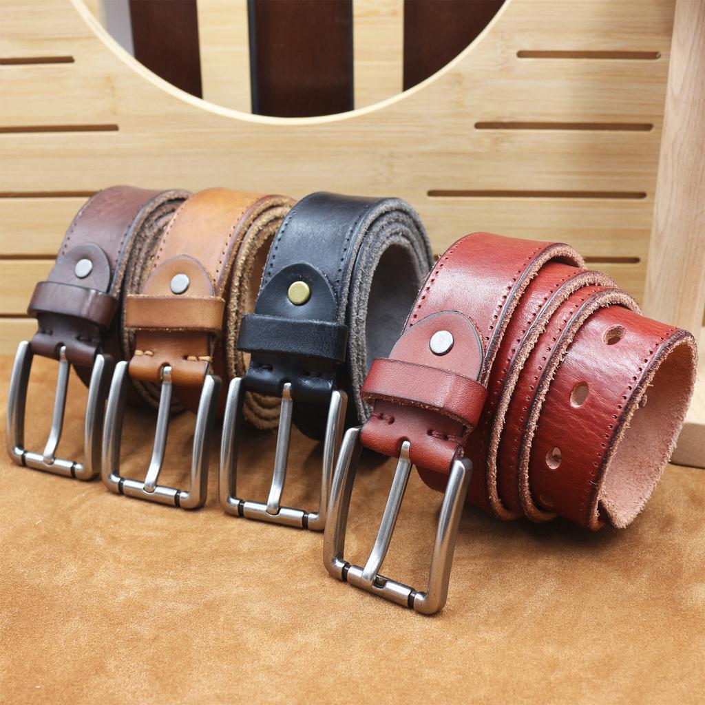 Thickened Genuine Leather Needle Buckle Top Layer Cowhide Fake Stitching Color Belt, Men's Retro Versatile Denim Belt