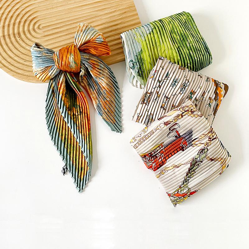 NEU Mode Plissiert Bedruckt Damen Halstuch Schals Vintage 70CM Quadratischer Plissierter Schal Für Damen Sommer Knitter Damen Schals