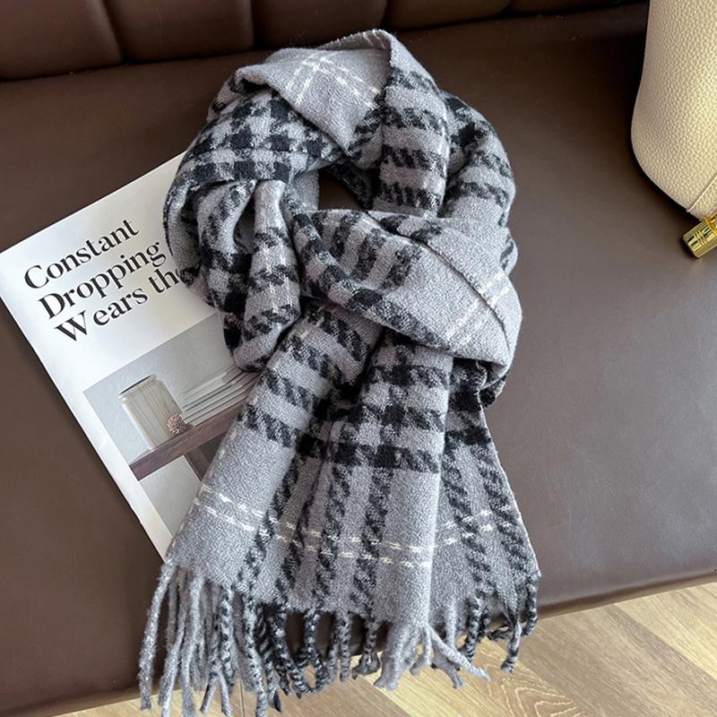 Women Acrylic Scarf Winter Vintage Preppy Style Plaid Wrap Scarves Pashmina Mujer Foulard Bufanda Shawl Unisex Men Tassel Stoles
