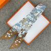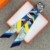 POBING Wheel Print 18m/m Twill Silk Scarves Women Luxury Brand Scarf Bag Ribbons Tie Head Scarf Small Long Skinny Scarf 86*5CM
