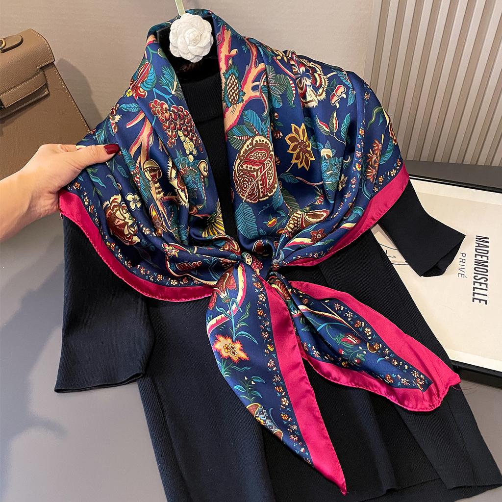 Four Seasons New Women Silk Square Scarf Hijab Female Design Print Lady Shawl Wraps Foulard Sun Protection Headbands Bandana