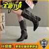Mode vielseitige lässige Western-Cowboystiefel Frühling und Sommer neues Designgefühl spitz zulaufende Lederstiefel dicker Absatz Damen Ritterstiefel