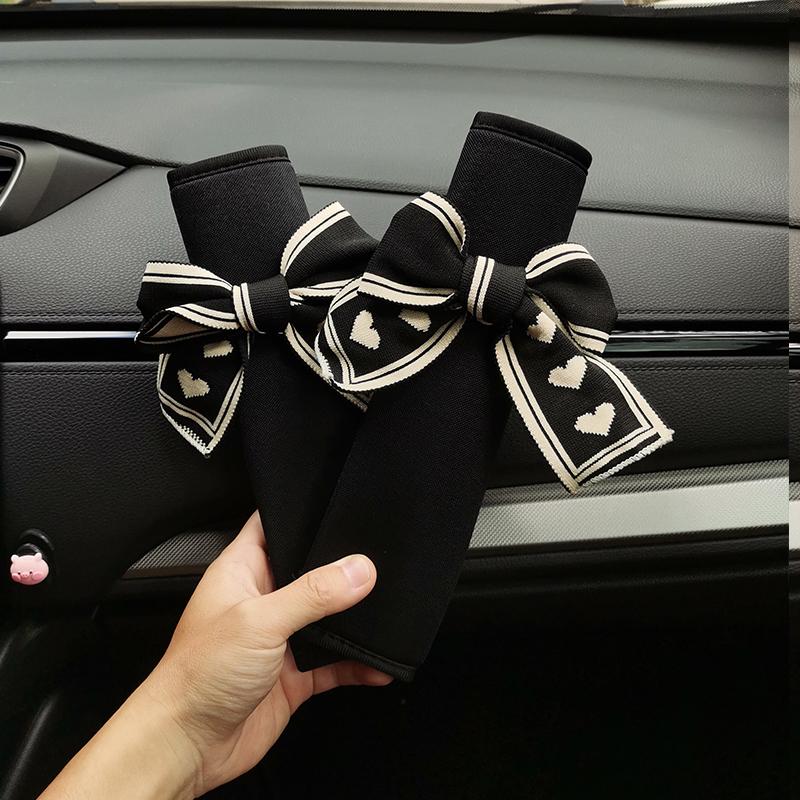 Fashion Lover Bow Ice Silk Car Seat Belt Cover For Neck Protection Universal Auto Seat shoulder Pads Strap Harness Cushion