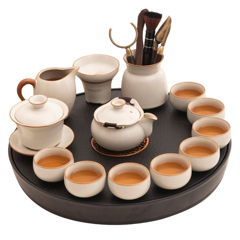 Ru kiln ceramic kung fu tea set, home office tea drinking tea, special teapot tea cup tea table, a complete set