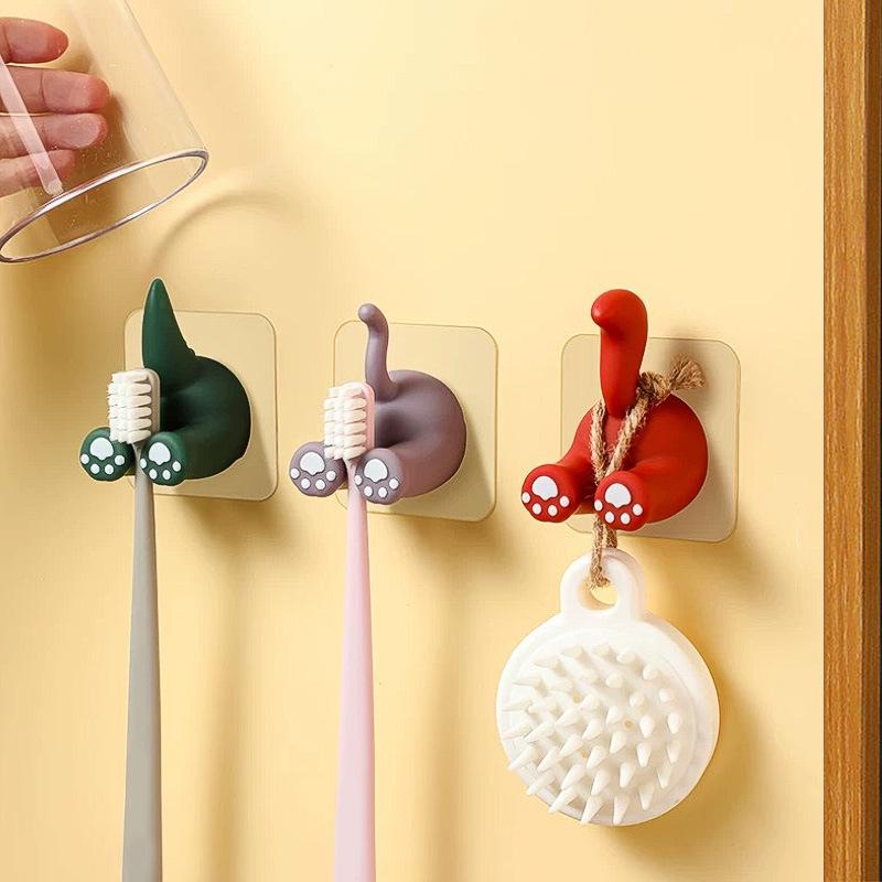 Niedliche Cartoon-Tier-Klebehaken für Kinderzahnbürsten - Spurlos, Bohrfrei, Wandmontierte Halter