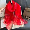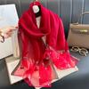 Luxuriöser, glänzender Spitzenschal aus Seide für Damen, Hijab, weiche Wolltücher und -tücher, große Blumen, dünne Schals, Foulard, Weiblich, Bufanda, Neu