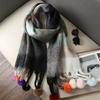 Luxuriöser Karoschal Winter Warm Kaschmir Damen Pompon Pashmina Foulard Damen Schals Damen Quasten Schal Stola Wickeltuch Design Neu