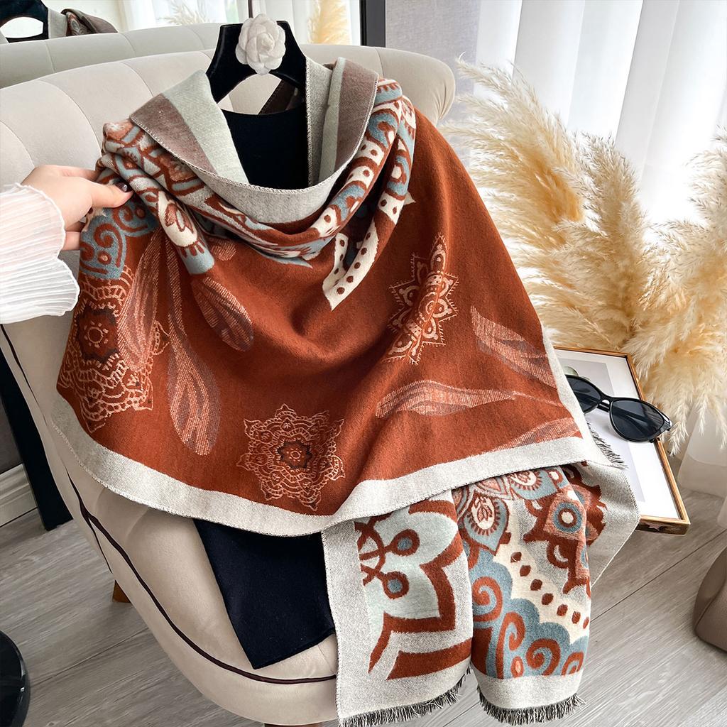 New Women's Double-Sided Paisley Print Faux Cashmere Scarf Soft Cozy Pashmina Shawl Winter Cold-Resistant Windproof Blanket