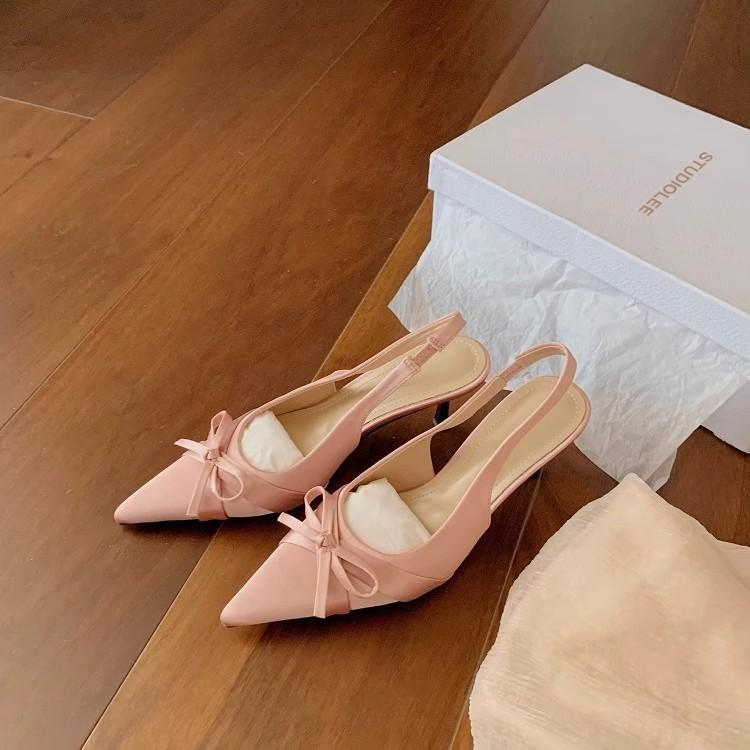 Trauben-Mutterstudiolee zeigt Beinlänge 7cm High Heel Sandalen Stiletto Schleife spitz hinten leer einzelne Schuhe Damen Sommer