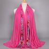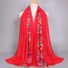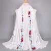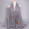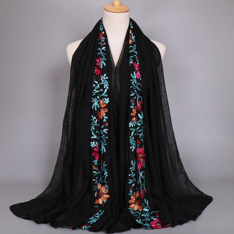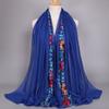 Autumn Fashion Embroider Viscose Scarf Women Plain Stitch Cotton Scarves Shawl Navy Blue Flower Sjaal Muslim Hijab Foulards