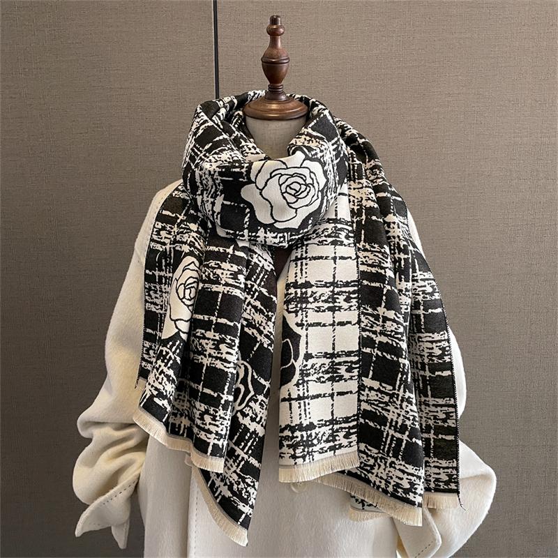 Luxury Brand Floral Print Scarf for Women Warmer Winter Cashmere Pashmina Scarves Shawls Female Thick Blanket Wraps Foulard