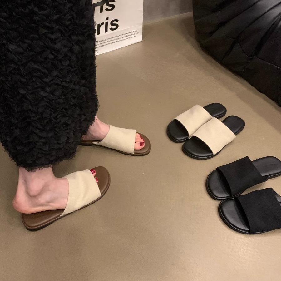 Französische Retro-Casual-Ein-Wort-Slipper mit flacher Sohle für Damen-Sommerbekleidung 2025 neu, cool für Strandurlaub am Meer