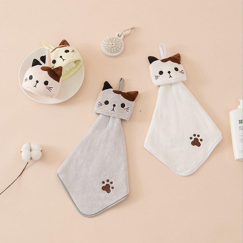 1PC Cute Cat Kitchen Cleaning Towel Hanging Hand Towels Absorbent Dishcloths Coral Velvet Soft Cleaning Cloth Rag