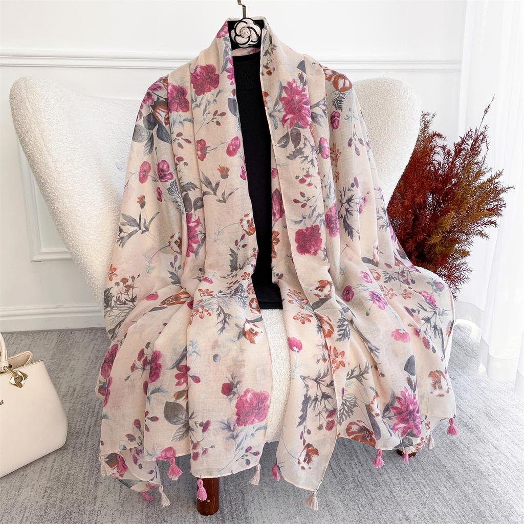 88*180cm Luxury Soft Women Viscose Scarf Female Floral Cotton Linen Feeling Shawl Tassel Muslim Hijab Pashmina Wraps