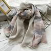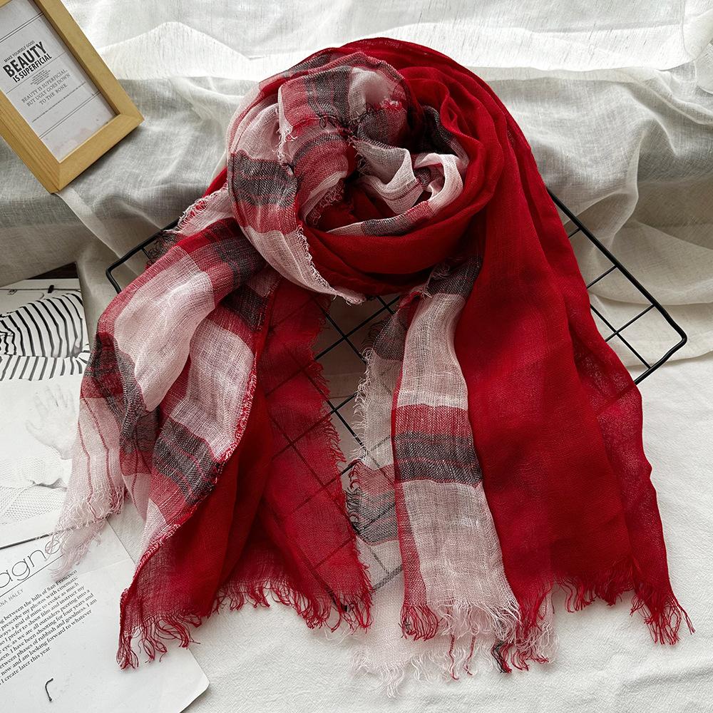 Leinen Karo Kontrast Quasten Leinen Herren/Damen Schals Weich Dünn Retro Schal Pashmina Schals Stolen Kopftuch Bandanas