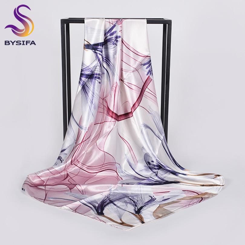 [BYSIFA] Scarf Hijab New Ladies Grey Red Square Scarves Wraps Fashion Floral Design Satin Silk Scarf Shawl Pink Blue 90*90