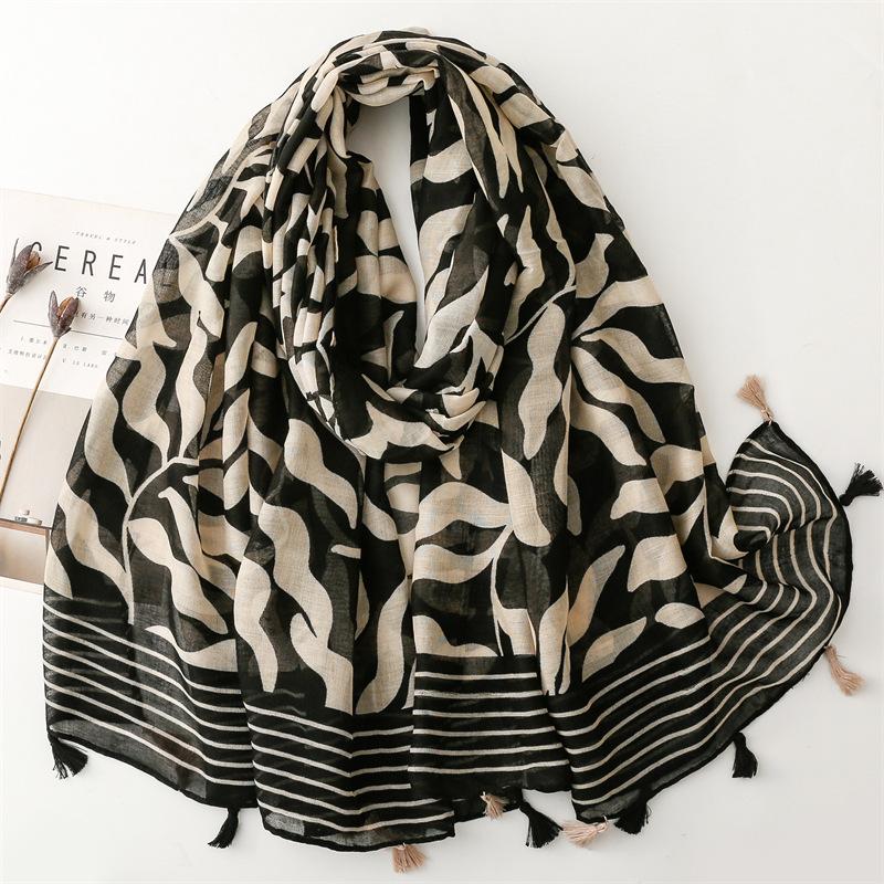 Luxury Women Leaf Scarf Summer Beach Shawl Cotton Linen Feeling Tassel Pashmina Muslim Hijab Wrap Lady Viscose Scarf