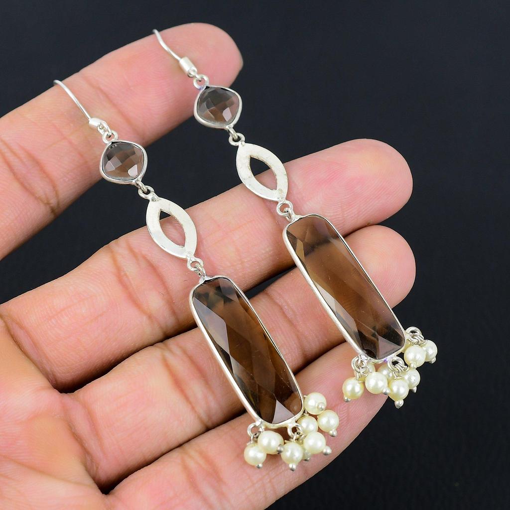 Schwestern-Tag Sale Rauchquarz Edelstein Sterling Silber Hängeohrringe Schmuck