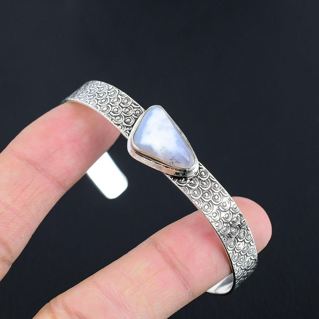 Sisters Day Sale Sterling Silver Trillion Natural Dendrite Opal Boho Wife Bangle