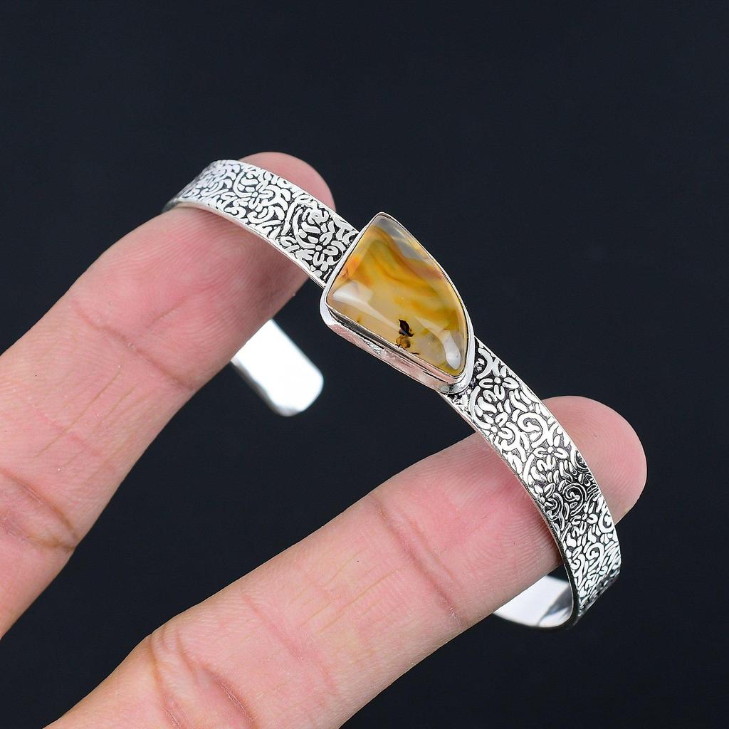 Sisters Day Deal Sterling Silver Montana Agate Gemstone Unique Bangle Jewelry