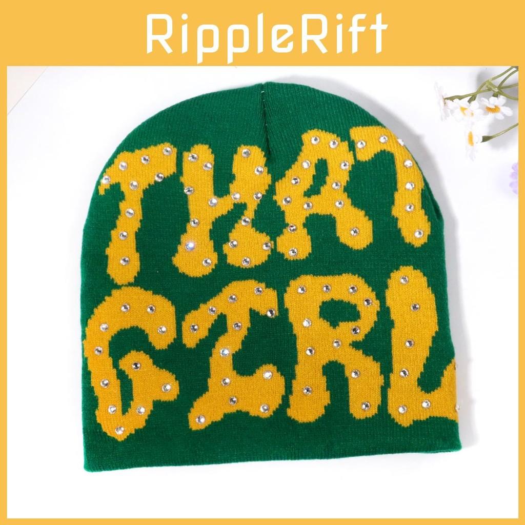 Pattern Fashion Letter Rhinestone Decoration Women Casual Warm Knitted Hat