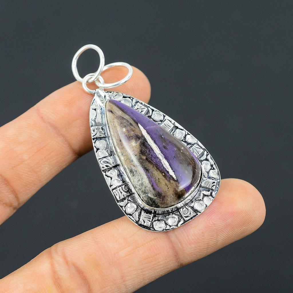 Jahrestagsgeschenk für sie Natürlicher Charoit Edelstein Anhänger 925 Sterling Silber