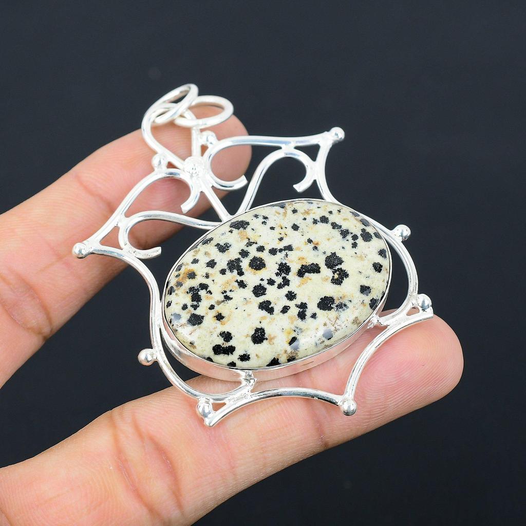 Womens day Sale Oval Natural Dalmatian Jasper 925 Sterling Silver Ethnic Pendant