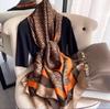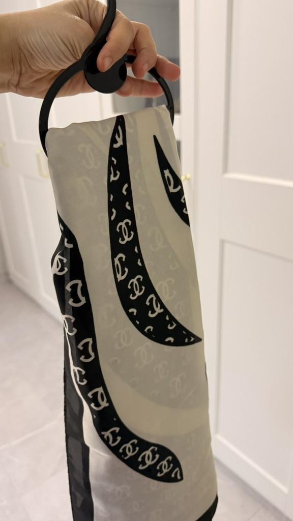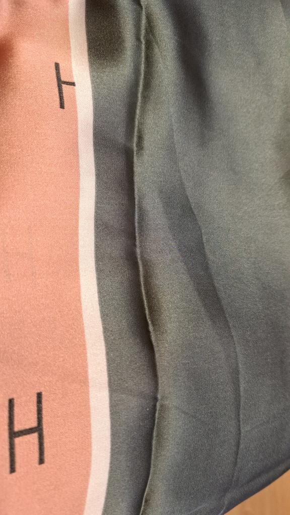Die Schals sind hübsch. Aber........Die Ecken sind nicht gerade. Die Größen sind kleiner. Auf dem beigen Hintergrund sind schwarze Streifen.